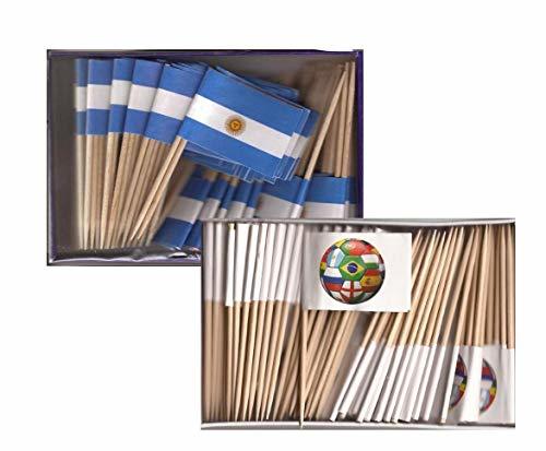 Mini Argentina and Soccer Ball Toothpick Flags, 1 Box of 100 Argentinian and 1 B