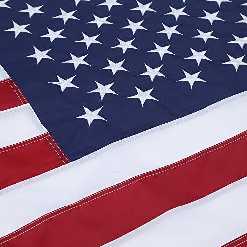 Product description: Homes all over the nation proudly display an American flag in their front yard and a large number of businesses follow suit. The Star Spangled banner is a symbol of freedom and strength to millions of people all over the world. Why waste money and time on low quality flags that fall apart in a months? time, when you can pick up a beautifully embroidered and stitched flag that will last you so much longer. Is the Old Glory you have out in your front yard just looking old now? Did you buy it just a couple of months ago and now it?s torn and tattered and just not doing our nation justice? Don?t buy a flag just because it?s a cheap price. Knowing the actual materials used in the product you?re buying is the only way you?re able to know the actual quality of said products. Don?t let your beautiful house be blemished by a tattered old flag. Buy something of a quality that you would be proud to have fly on your flagpole.