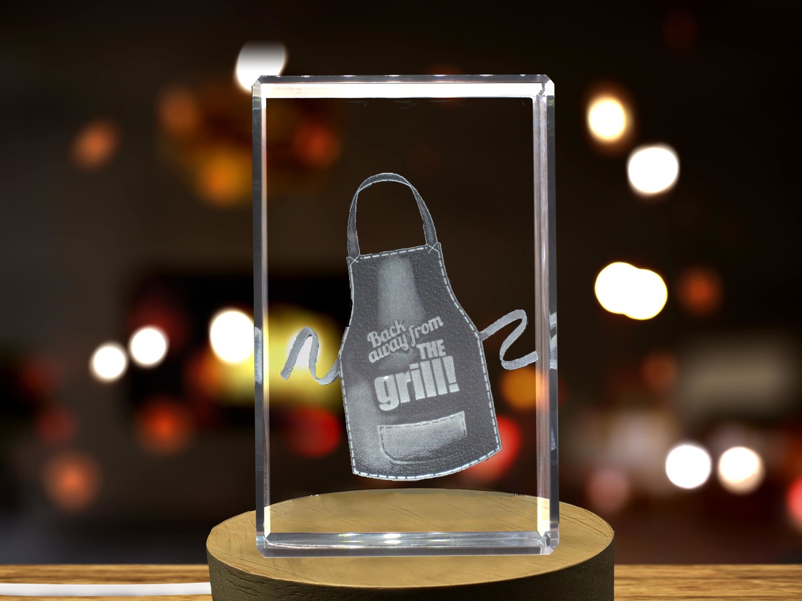 LED Base included | Back Away from the Grill 3D Engraved Crystal 3D Engraved