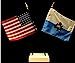 Product description: Deluxe desk and table flags measure 4"x6" and are attached to a 10" black plastic staff with a gold spear top. Each flag is hem stitched on all 4 sides and is made of high quality rayon. Solid white ArcticSno flag stand displays the two flags in a crossed position. Stands measure 3.5" long and 2.5" wide and stand about .75" tall.