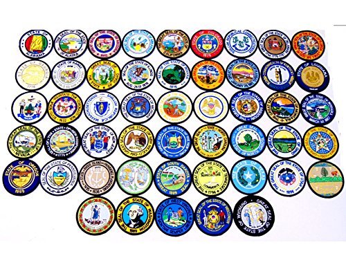 United States Flag Seal Patch Set. One seal patch for each state in the county. 100% embroidered patches with iron-on heat seal backing. You can also sew them on.