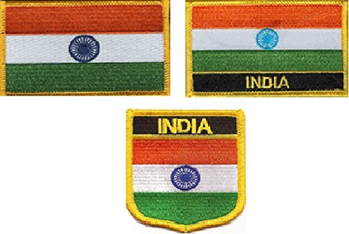 3 Pack Set of India Flag Patches, Patch with Name, Without Name and a Shield