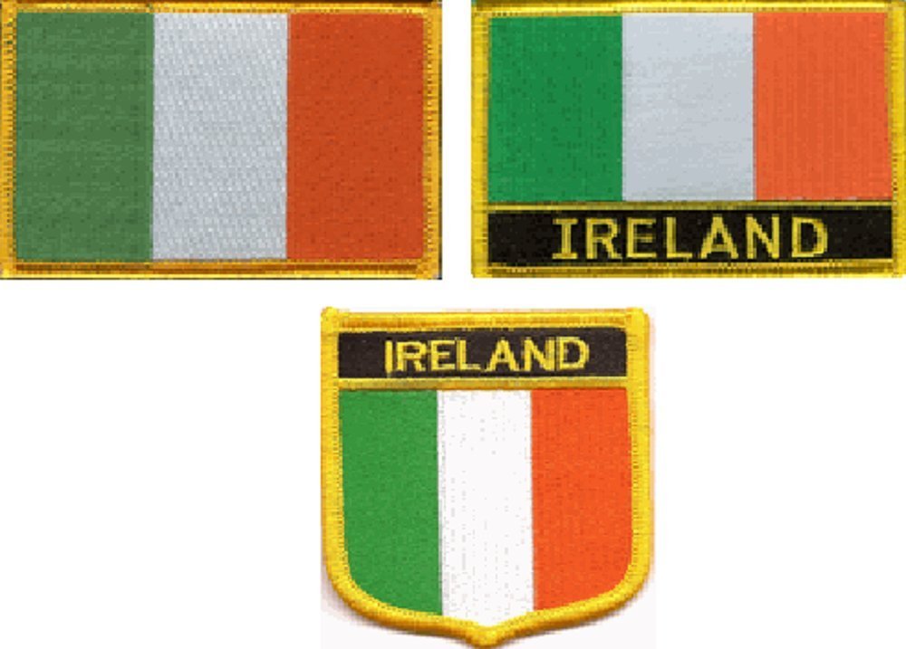 3 Pack Set of Ireland Flag Patches, Patch with Name, Without Name and a Shield