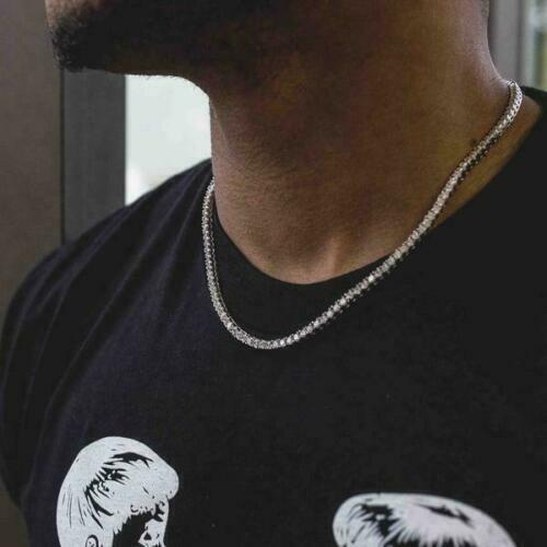 Collana a catena classica da uomo con taglio rotondo da 45 carati placcata...