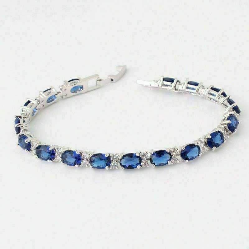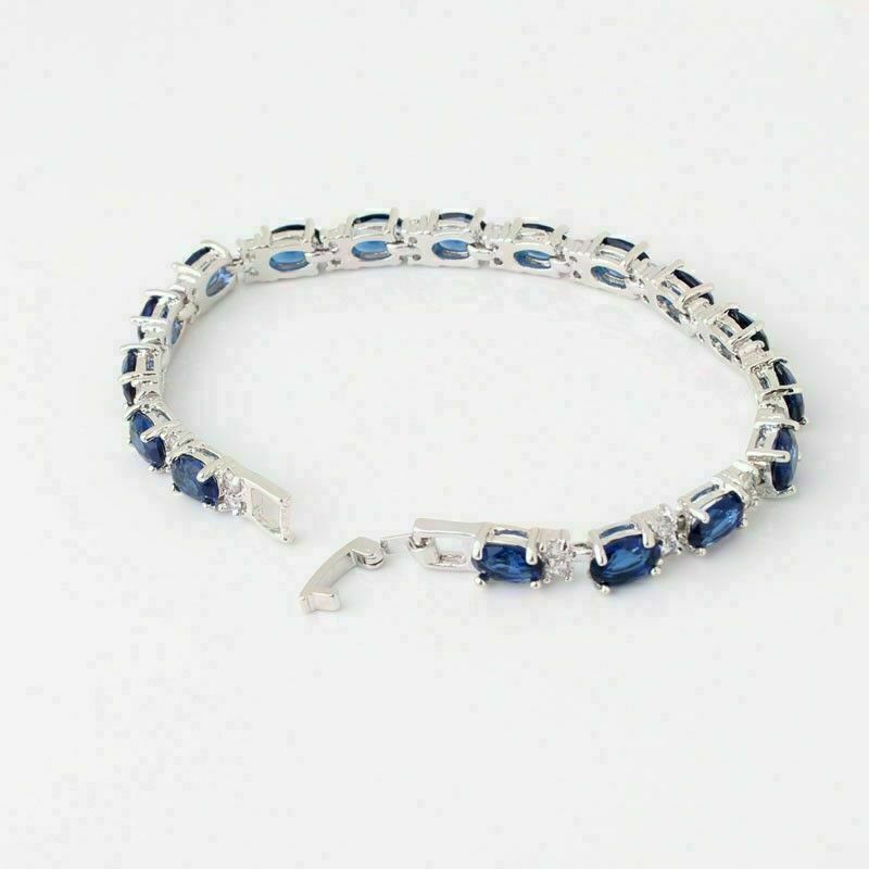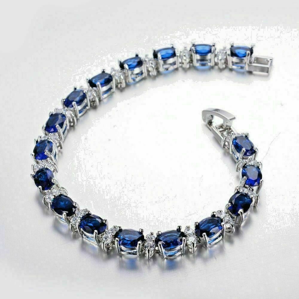 Bracciale tennis con zaffiro blu a taglio ovale da 10 ct, placcato in oro...
