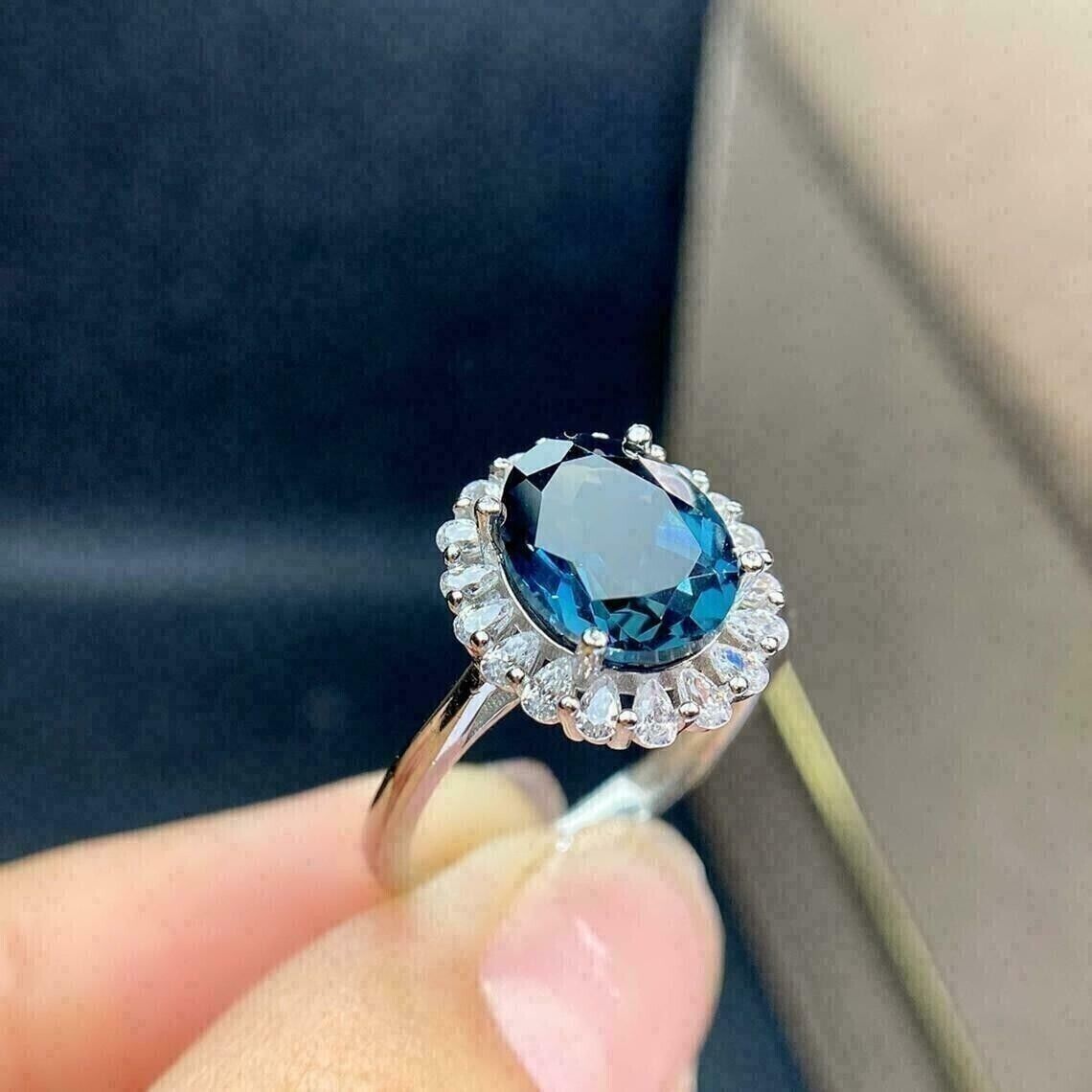 Bague de fiançailles topaze bleue de Londres simulée taille ovale 2 carats...