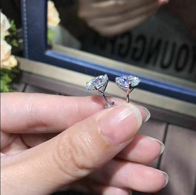 Orecchini a bottone solitario in moissanite con zirconi rotondi da 2 carati...