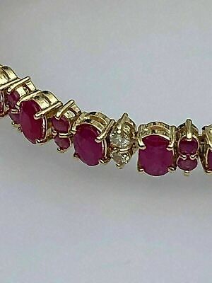 14.5CtOval CZ Bracelet Rubis Rose Ligne De Tennis Ronde Or Jaune 14K...