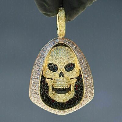Ciondolo scheletro CZ a taglio rotondo da 2,50 ct Catena placcata oro...