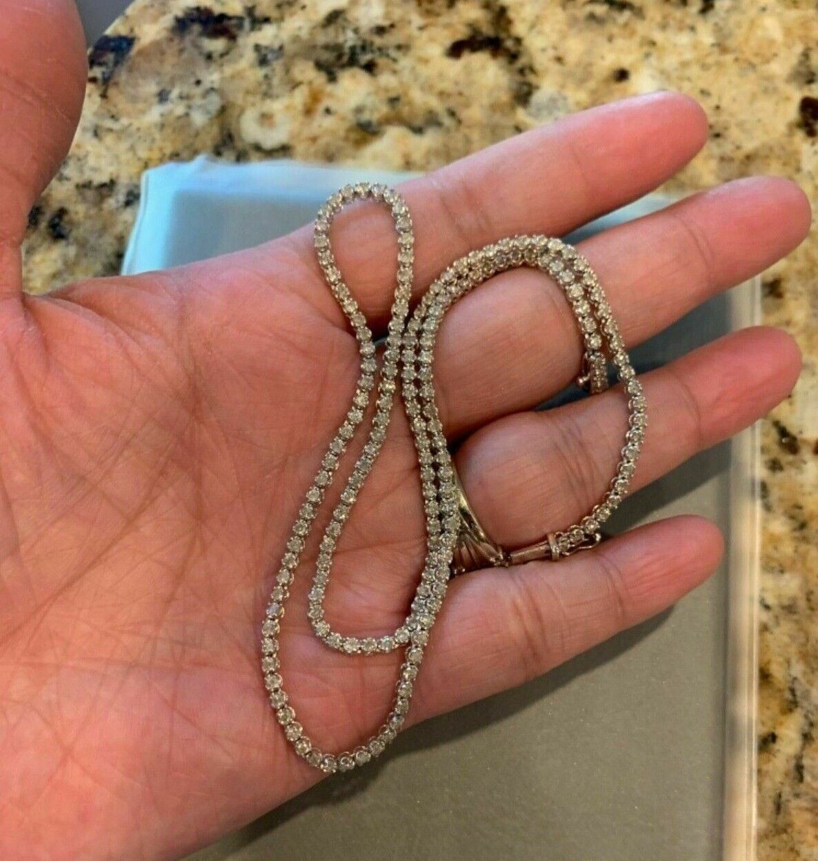 17.00CT Oxyde De Zirconium Beau Collier De Tennis Plaqué Or Blanc 14K-Argent