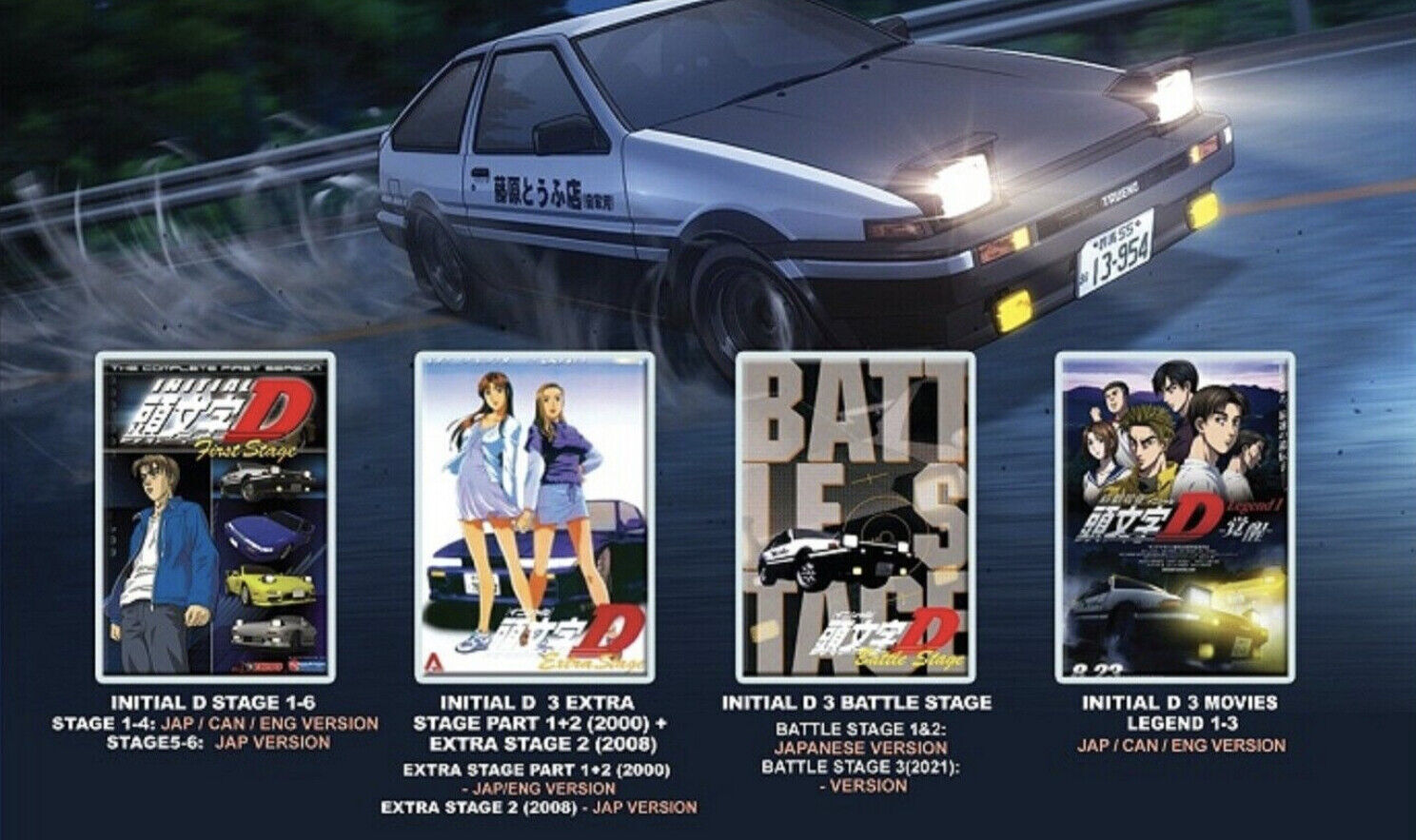DVD Anime INITIAL D COMPLETE Stage 1-6 +3 Film +3 Extra Stage +3 Battle +CD OST