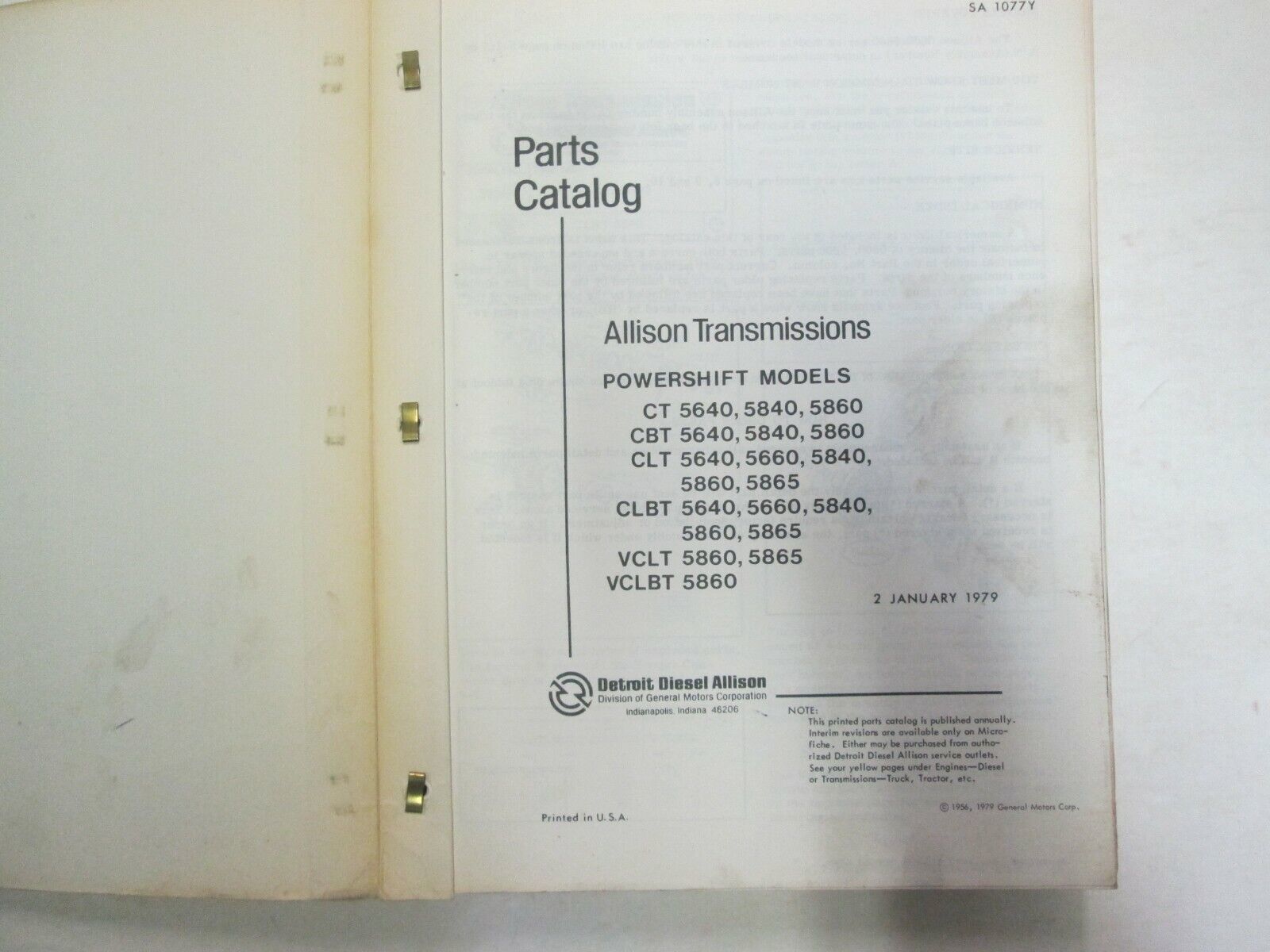 Detroit Diesel Allison Transmissions 5600-5800 Series Service Manual SA1077Y