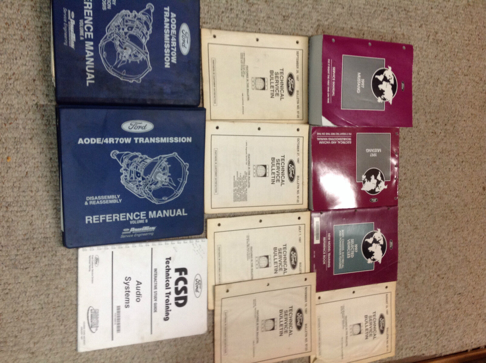 1997 Ford Mustang Factory Service Manual, Technical Service Bulletins Manual, Electrical Vacuum Troubleshooting Manual, Training Manuals, Transmission Reference Manuals