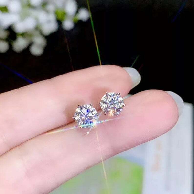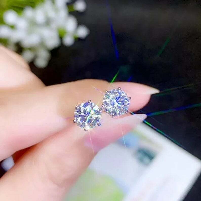 Aretes Solitarios De Circonita Cúbica De Corte Redondo De 2 Ct Chapados En...