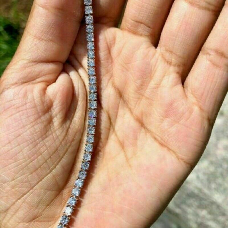 14K Plaqué Or Blanc-Argent 10Ct Magnifique Bracelet De Tennis Avec Zircons...