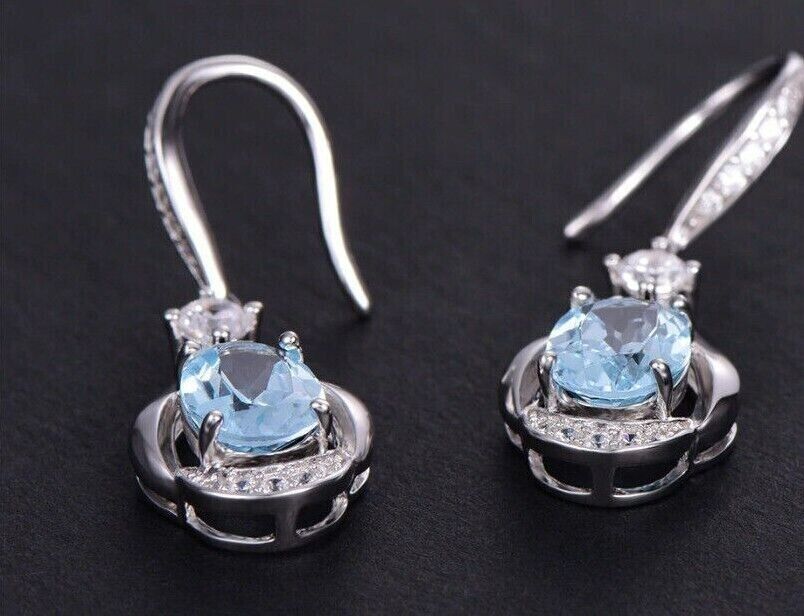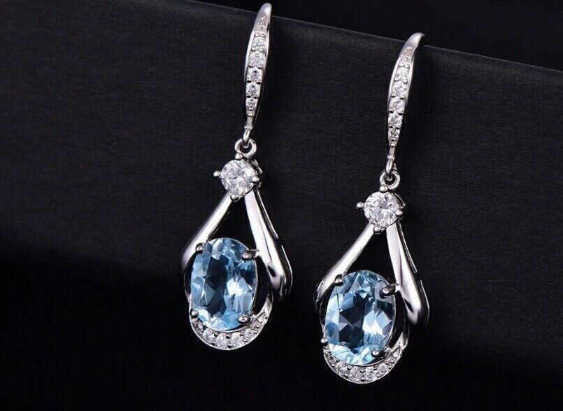 Boucles d'oreilles goutte/pendentifs en topaze bleue avec topaze bleue 4...