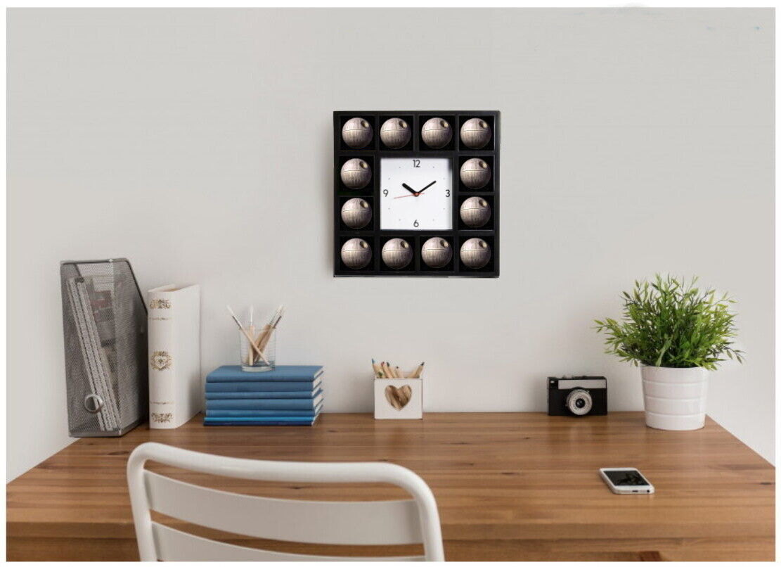 Star Wars Death Star Clock promo around the Clock with 12 surrounding images