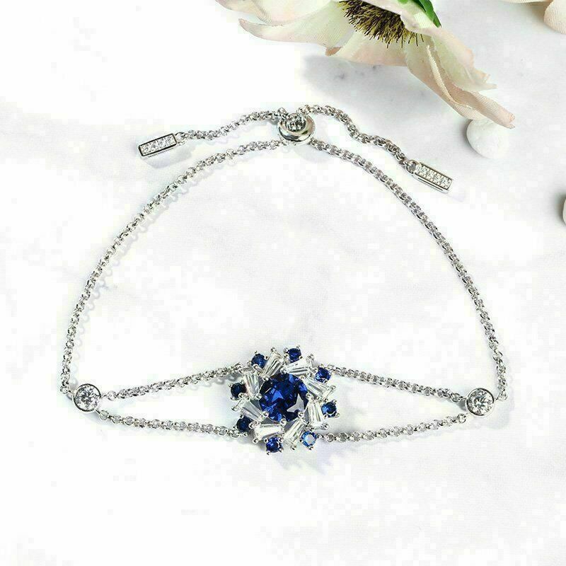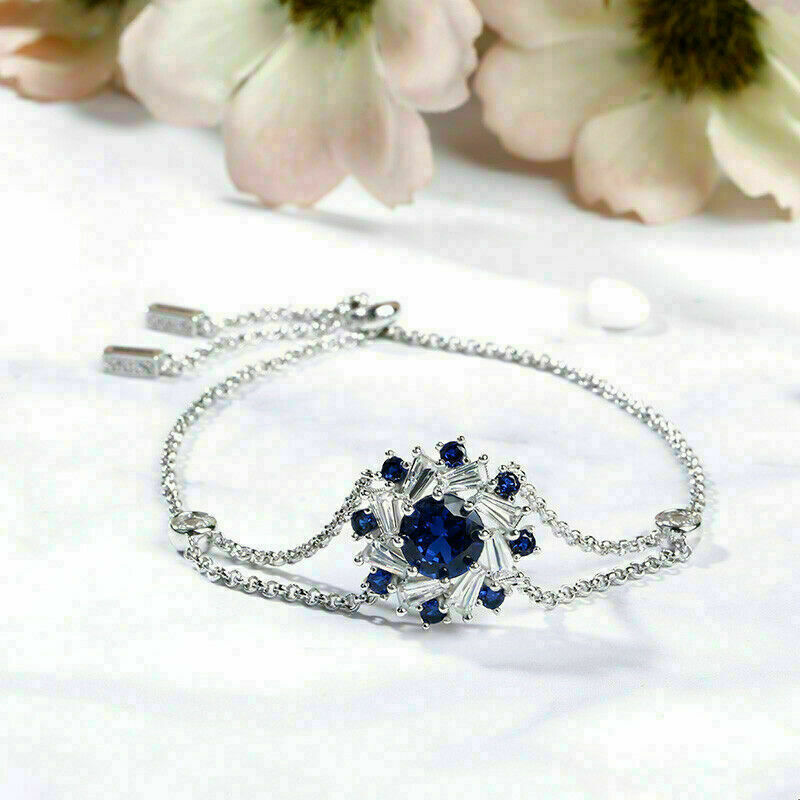 Brazalete de tenis con halo de zafiro azul con circonitas redondas de 10...
