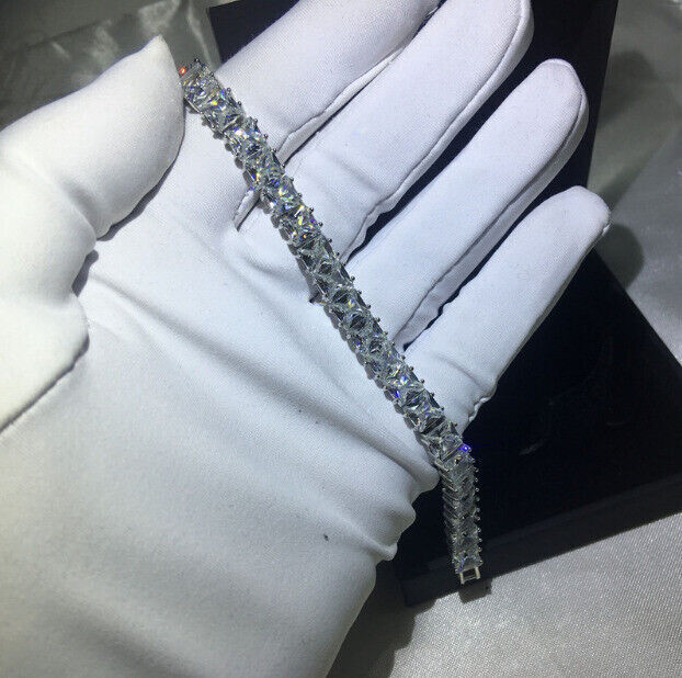 Bracelet Tennis Un Rang Zircon Cubique Princesse 7mm Plaqué Or Blanc 18K-Argent