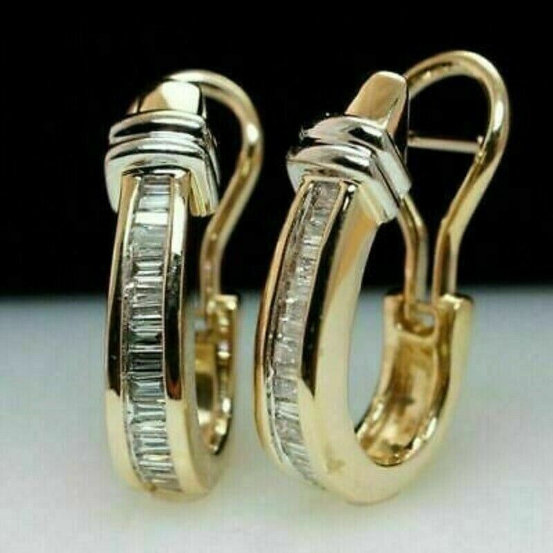 Pendiente de aro con circonitas cúbicas de corte baguette de 0,70 quilates...