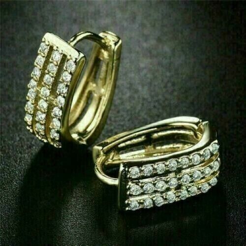 Orecchini a cerchio da donna a 3 file di zirconi cubici da 2 ct, placcati...