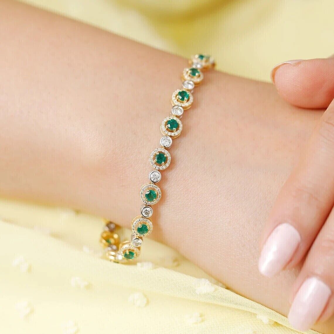5.00Ct Round Cut Simulated Emerald Tennis Bracelet 14K Yellow Gold Plated 925