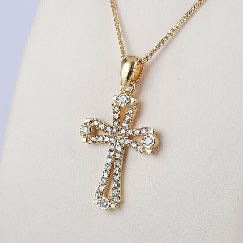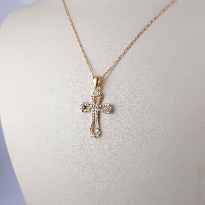 Pendente con croce CZ a taglio rotondo da 2 and 50 similar items