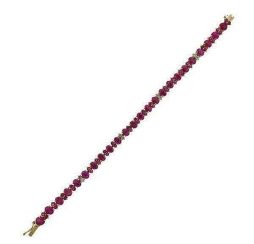 14.5Ct Oval Cut Simulated Ruby Tennis Bracelet 14K Yellow Gold Plated Silver