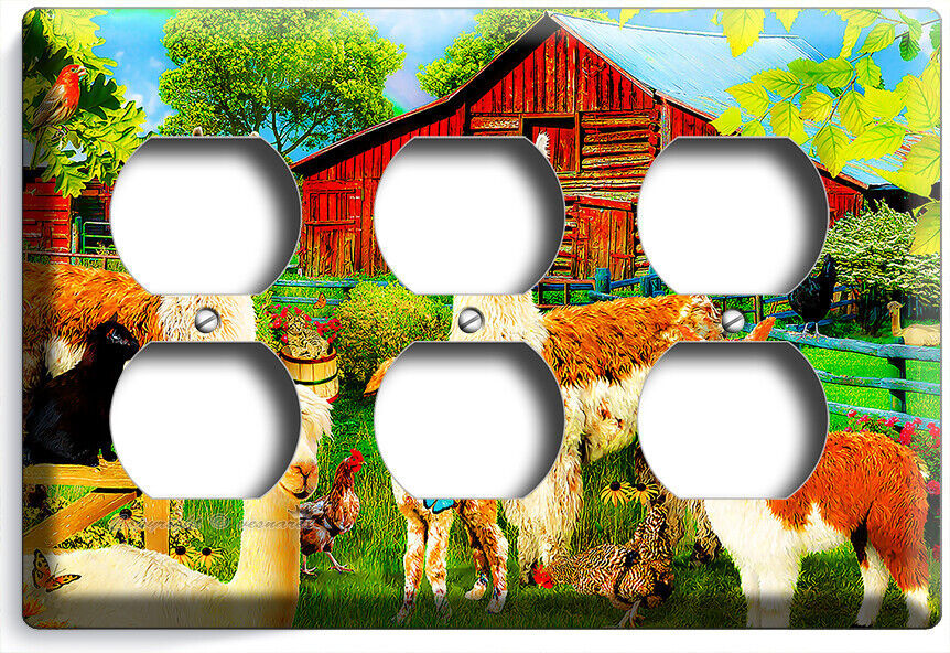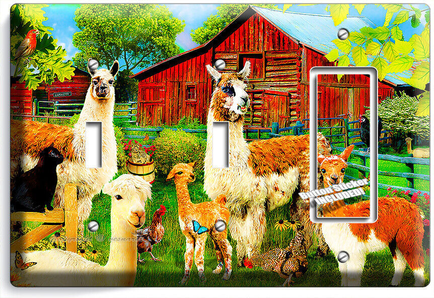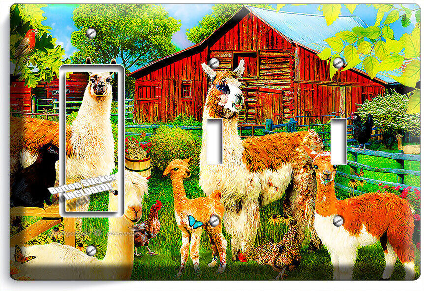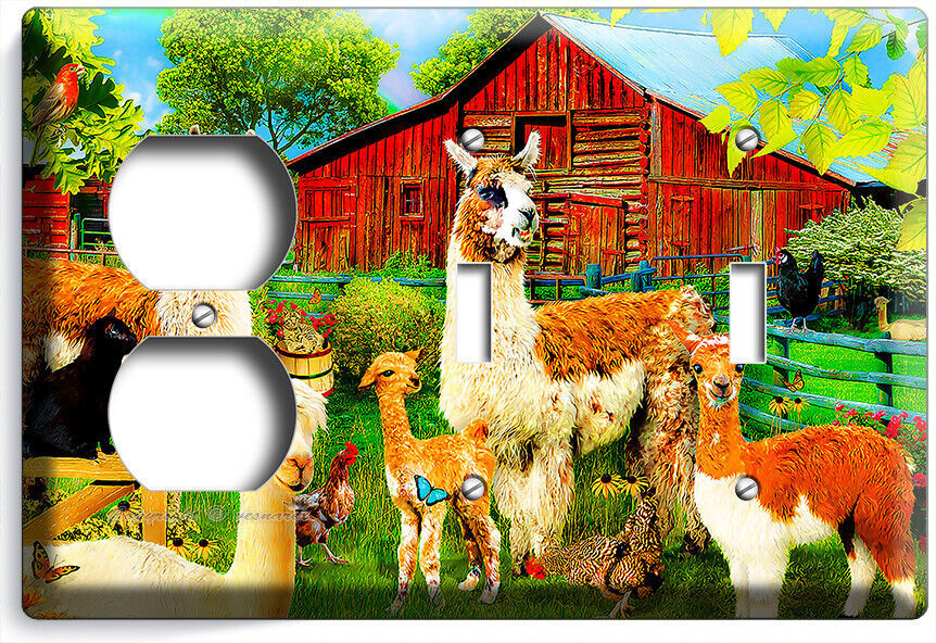 LLAMA FARM RED BARN LIGHT SWITCH OUTLET WALL PLATES FARMHOUSE COUNTRY ROOM DECOR