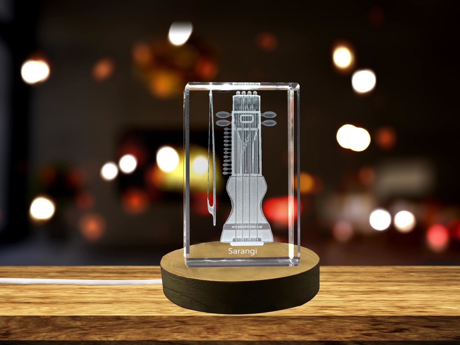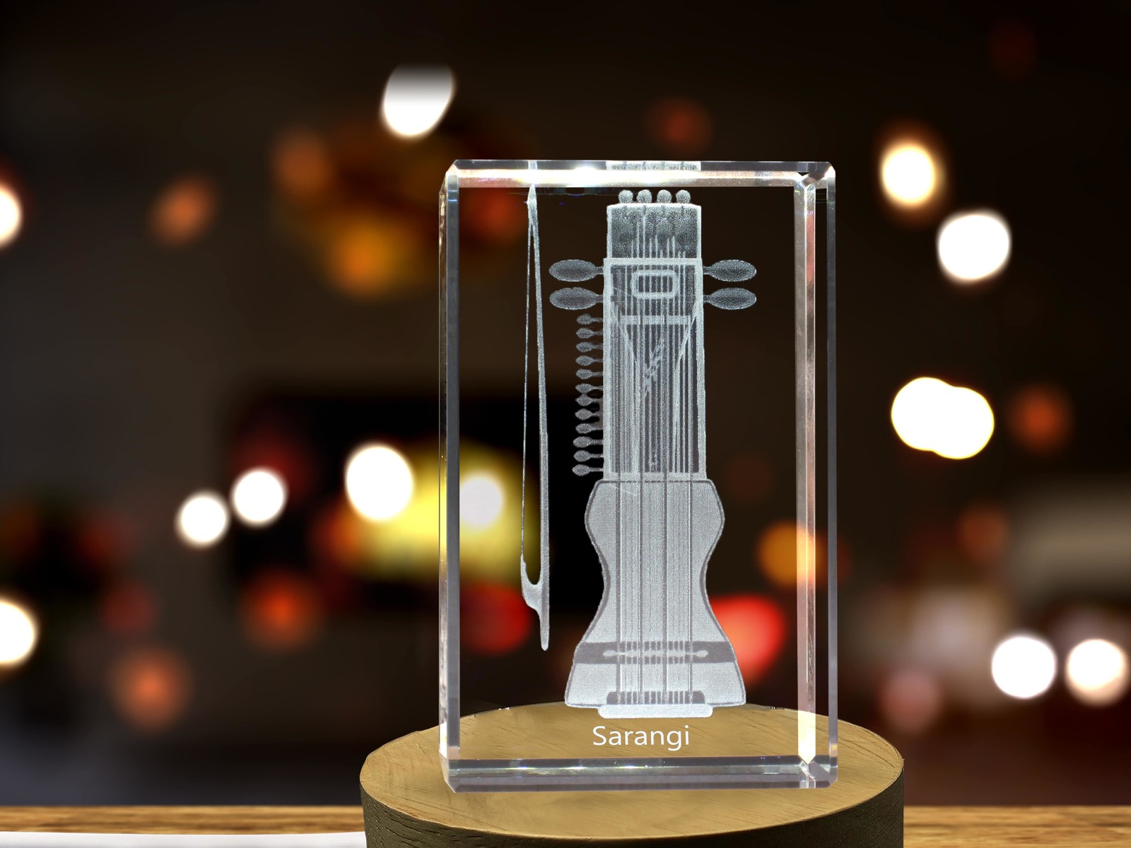 LED Base included | Sarangi 3D Engraved Crystal 3D Engraved Crystal Keepsake