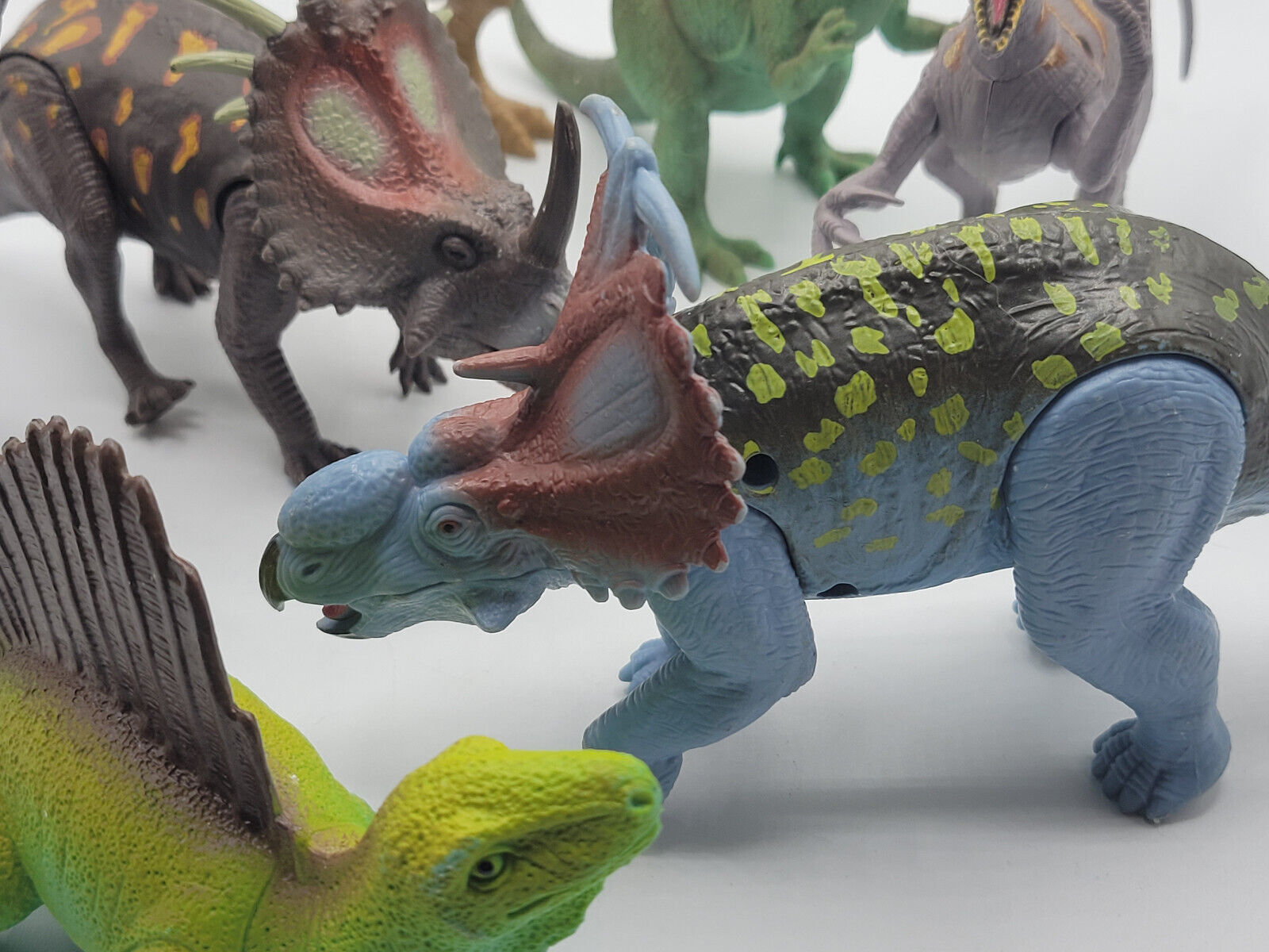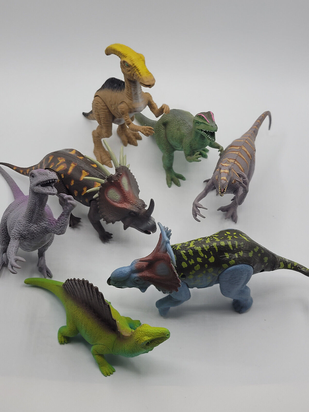 7 Dinosaurs Hard Plastic Toys for Play Crafts Diorama Prehistoric Scenery Green