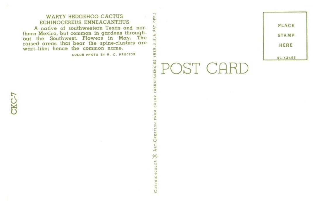Warty Hedgehog Cactus Native Of Texas And Mexico Cactus Postcard