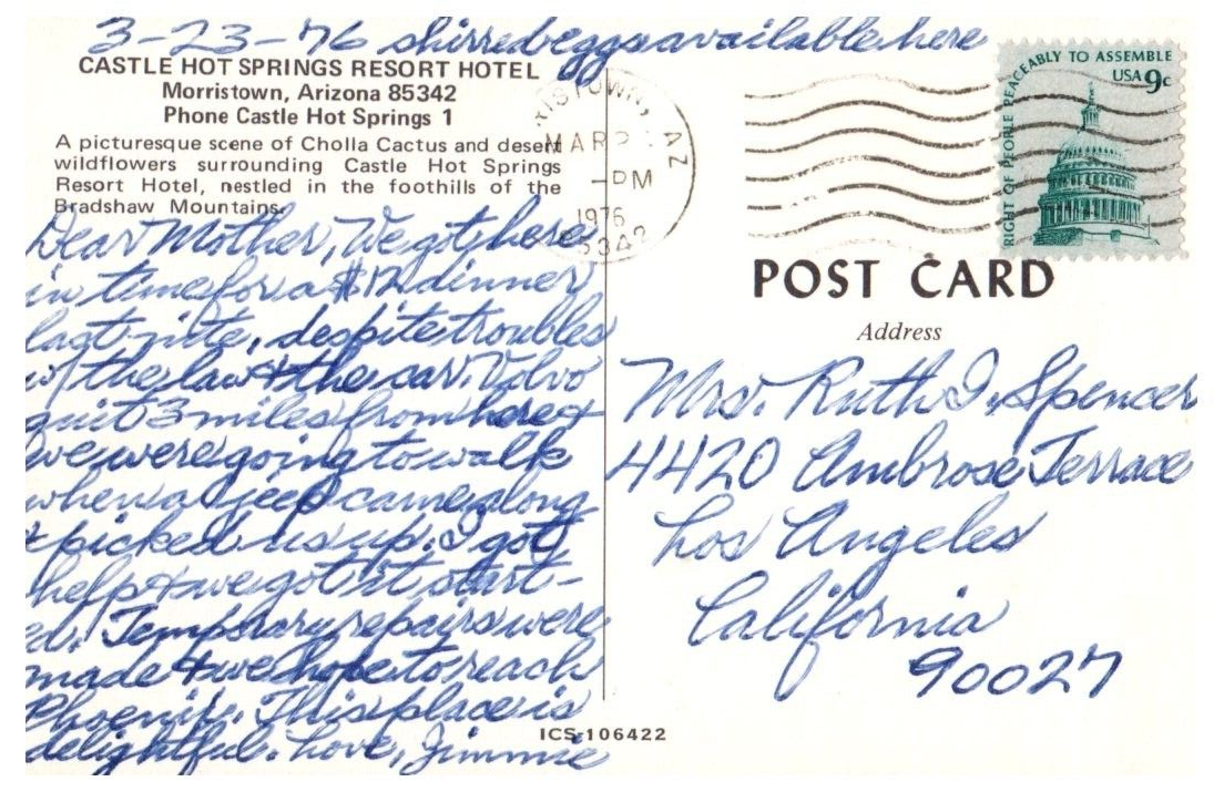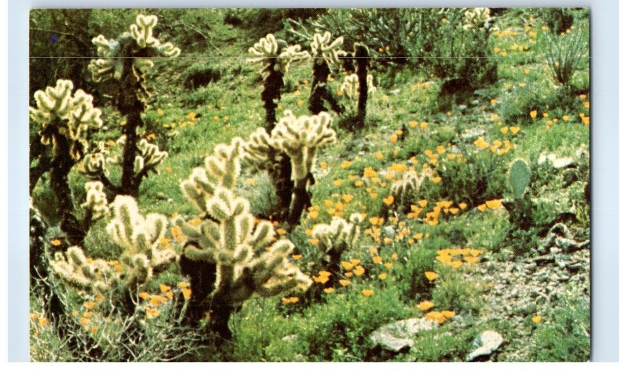 Cholla Cactus and Desert Wildflowers Arizona Cactus Postcard Posted 1976