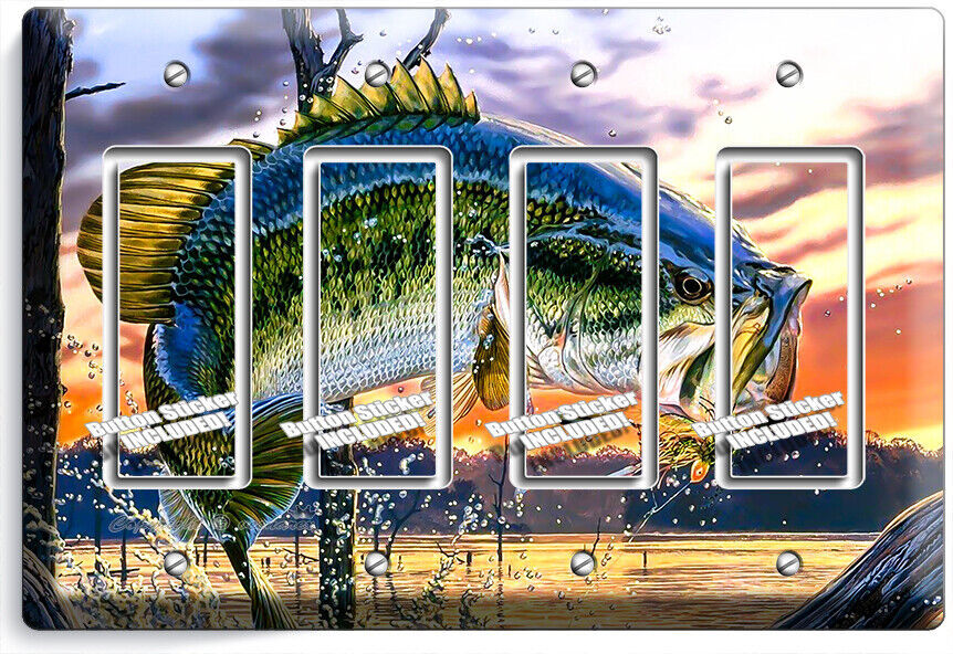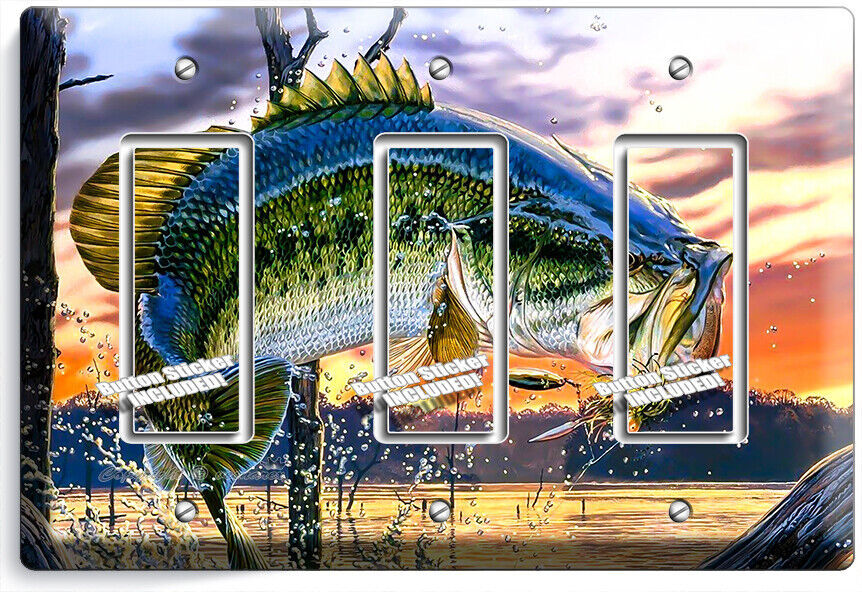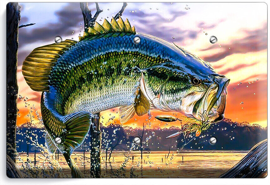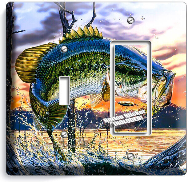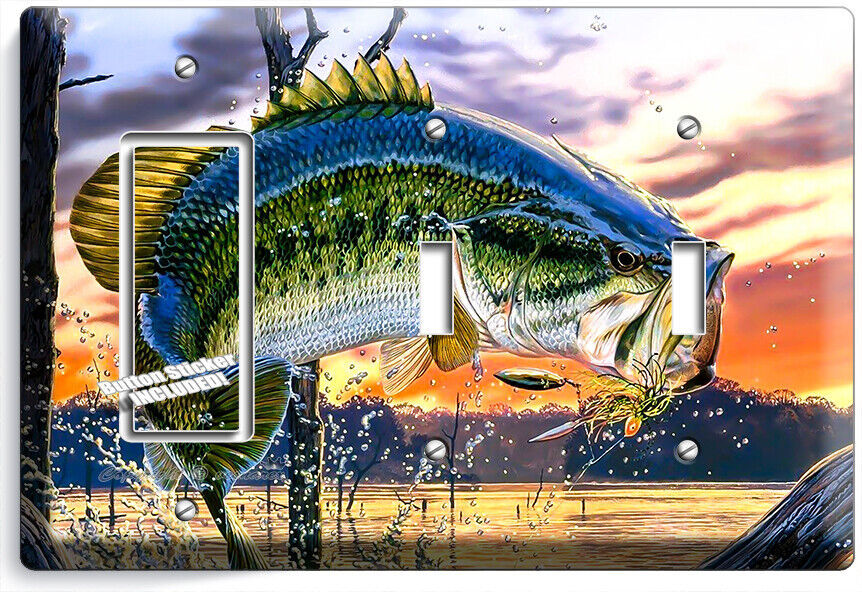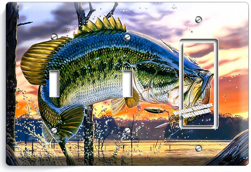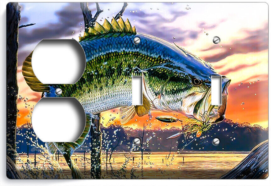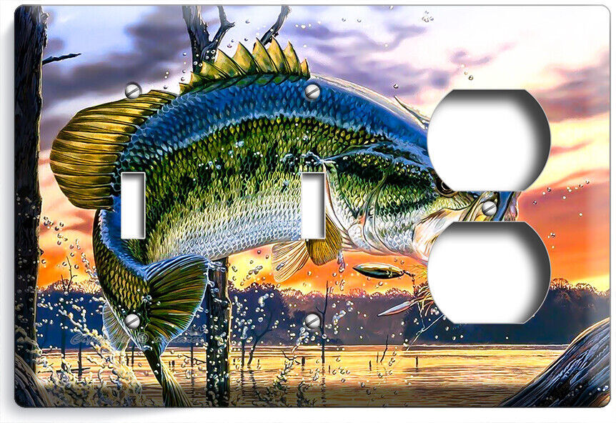 LARGEMOUTH BASS FISHING AMERICAN OUTDOORS LIGHT SWITCH OUTLET HD ART WALL PLATES