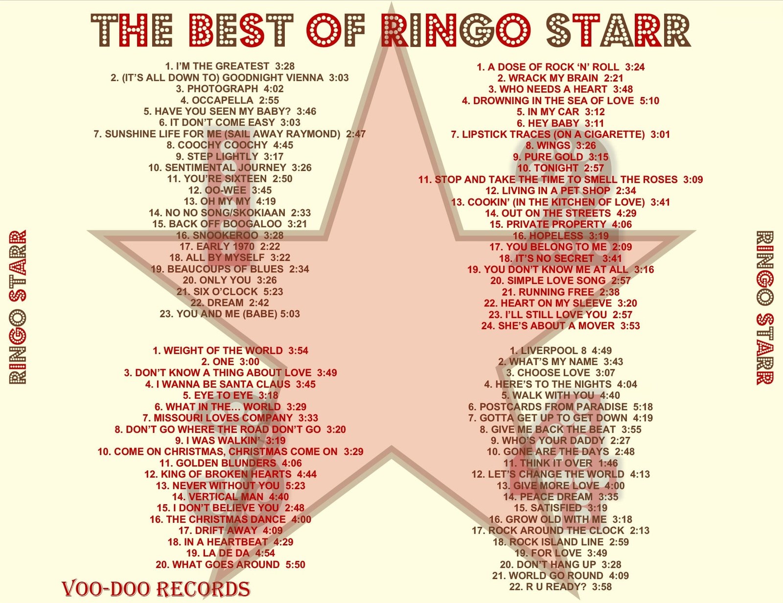 Amazing, career-spanning retrospective covers Ringo's entire solo career in a fashion deserving of such a legend. Beginning with his debut solo album, Sentimental Journey from 1970 and going all the way through Ringo's latest studio release (EP3, from September 2022), this 4-disc fan-made set hits all the right notes along the way in showing just how much fun music Ringo had to offer over the past fifty-plus years, from his haunting debut single, It Don't Come Easy from 1971, to his commercial peak with 1973's self-titled Ringo album (represented here by nine of its ten tracks, including both of Ringo's number one singles, Photograph and You're Sixteen), to all the studio albums he recorded along the way. Every album is represented by at least one song and most are represented by multiple tracks (including the incredibly rare vinyl-only 1977 release 'Scouse The Mouse', which has two songs on this collection), giving a full representation of Ringo's entire career as a solo artist. All the tracks have been lovingly matched with regards to volume level and overall sonic clarity, so this set will be an extremely pleasant listen. Beautiful artwork (including disc art which mirrors period-specific record labels for each era) ensures this set is a treat for the eyes as well as the ears. Definitely worth a listen to show just what a strong solo career Ringo has had through the decades. Perfect gift to pick up for that Ringo / Beatles fan in your life, or even yourself.