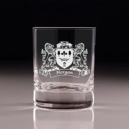 Horgan Irish Coat of Arms Old Fashioned Tumblers - Set of 4. Sometimes, bigger is better! These taller, wider tumbler glasses are perfect for craft cocktails and whiskey. It's larger size allows room for our fan favorite "Lions" design, which is expertly and permanently sand-etched into each tumbler with your very own Irish Coat of Arms and Surname! These lavish Master's Reserve glasses undergo DuraTemp treatment to increase chip resistance, feature a clean beadless rim, thin walls, and a heavy base with a luxurious feel. Each glass was made to complement your finest whiskies and elevate the presentation and experience of your drink.