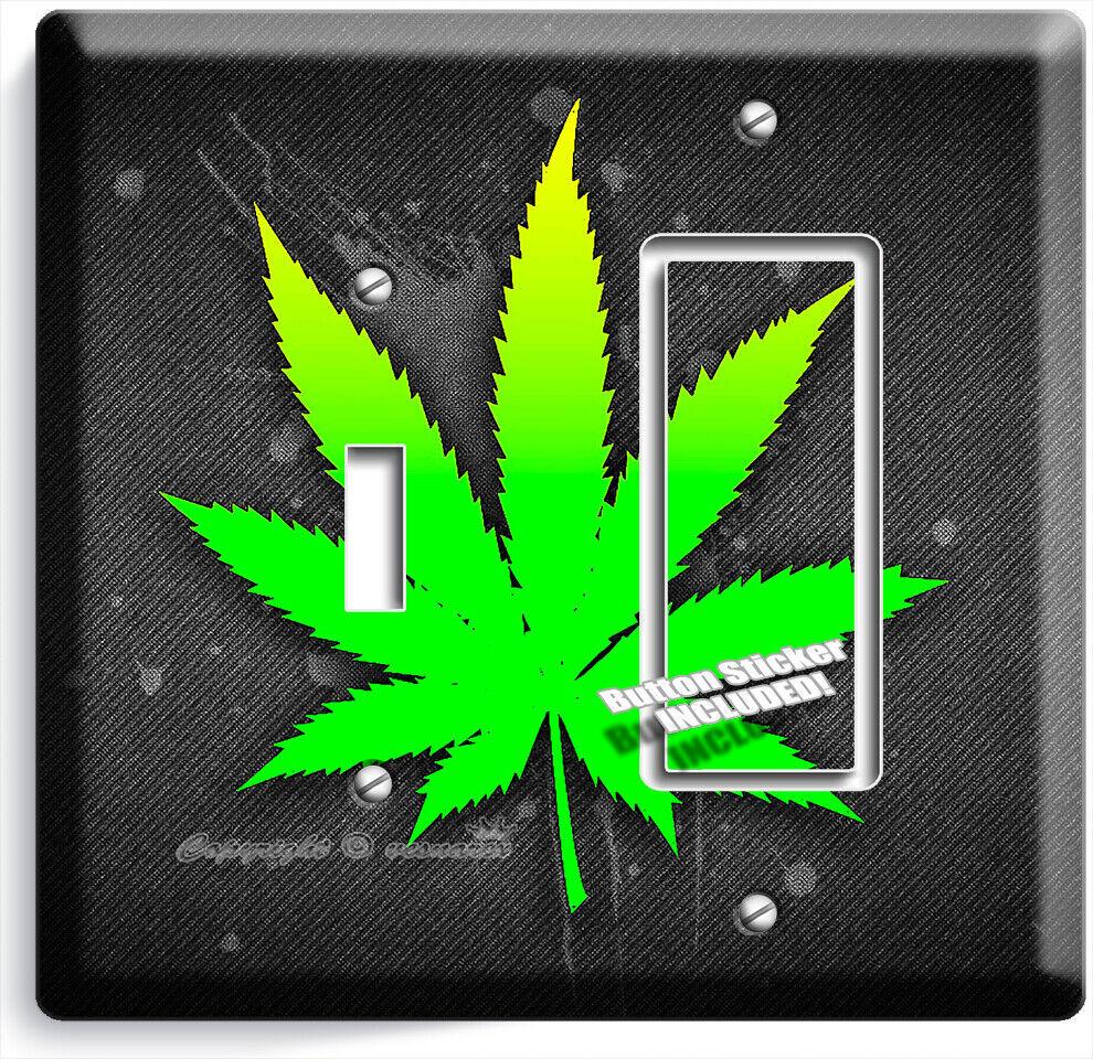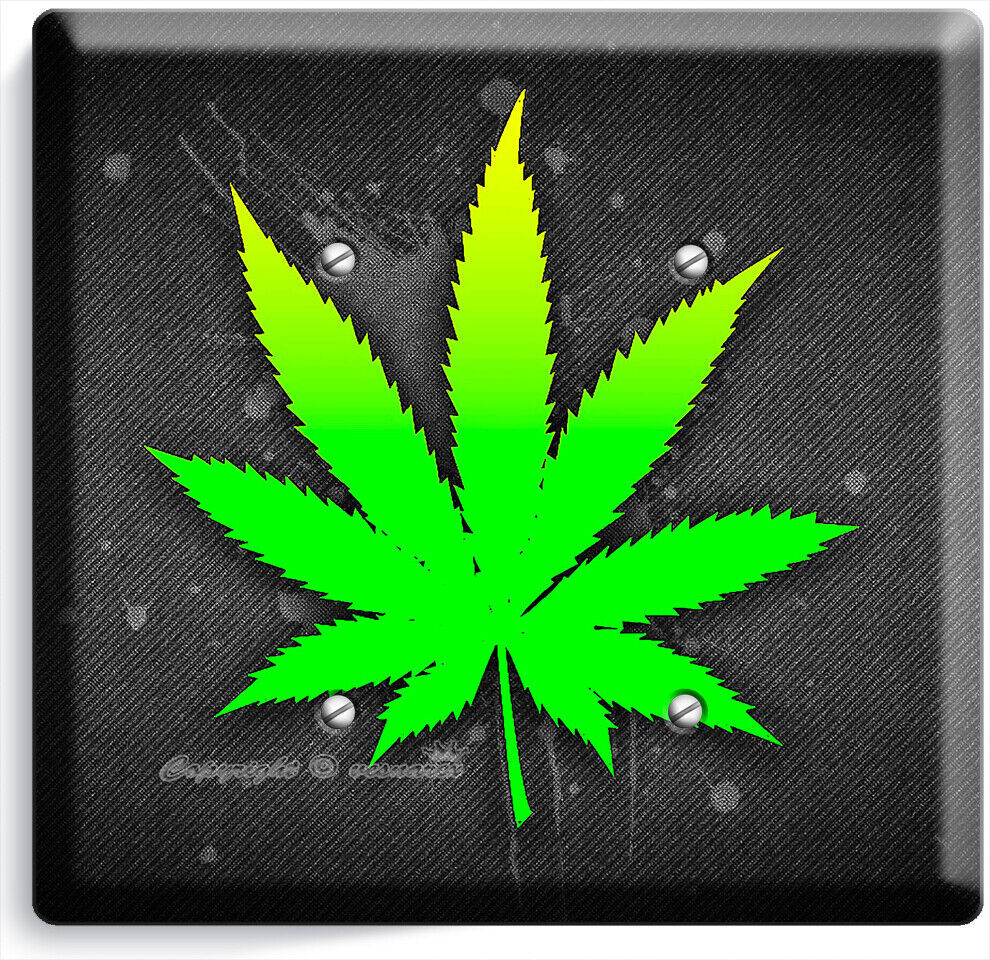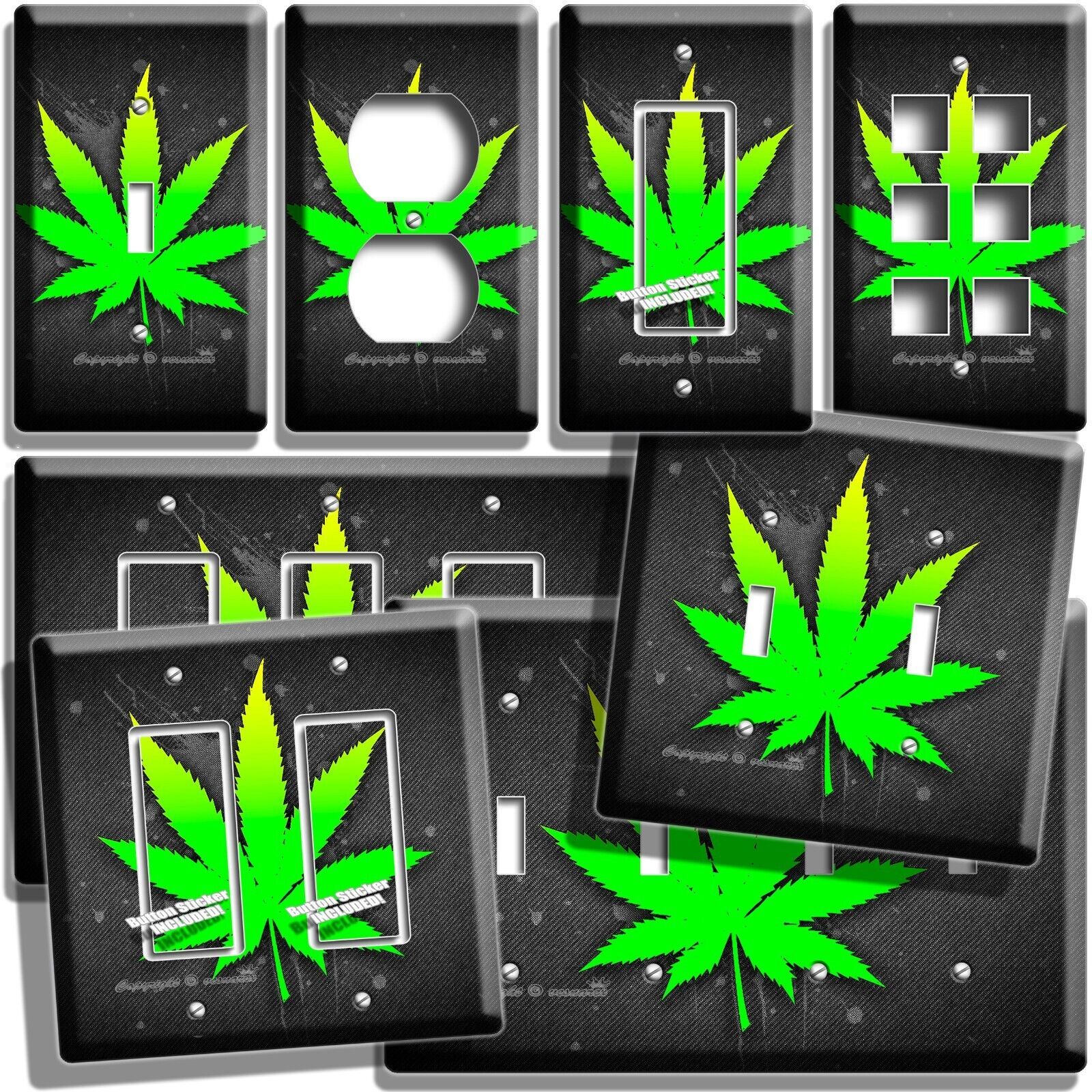 GREEN CANNABIS MARIJUANA LEAF LIGHT SWITCH OUTLET WALL PLATE HIPPIE HD ART DECOR