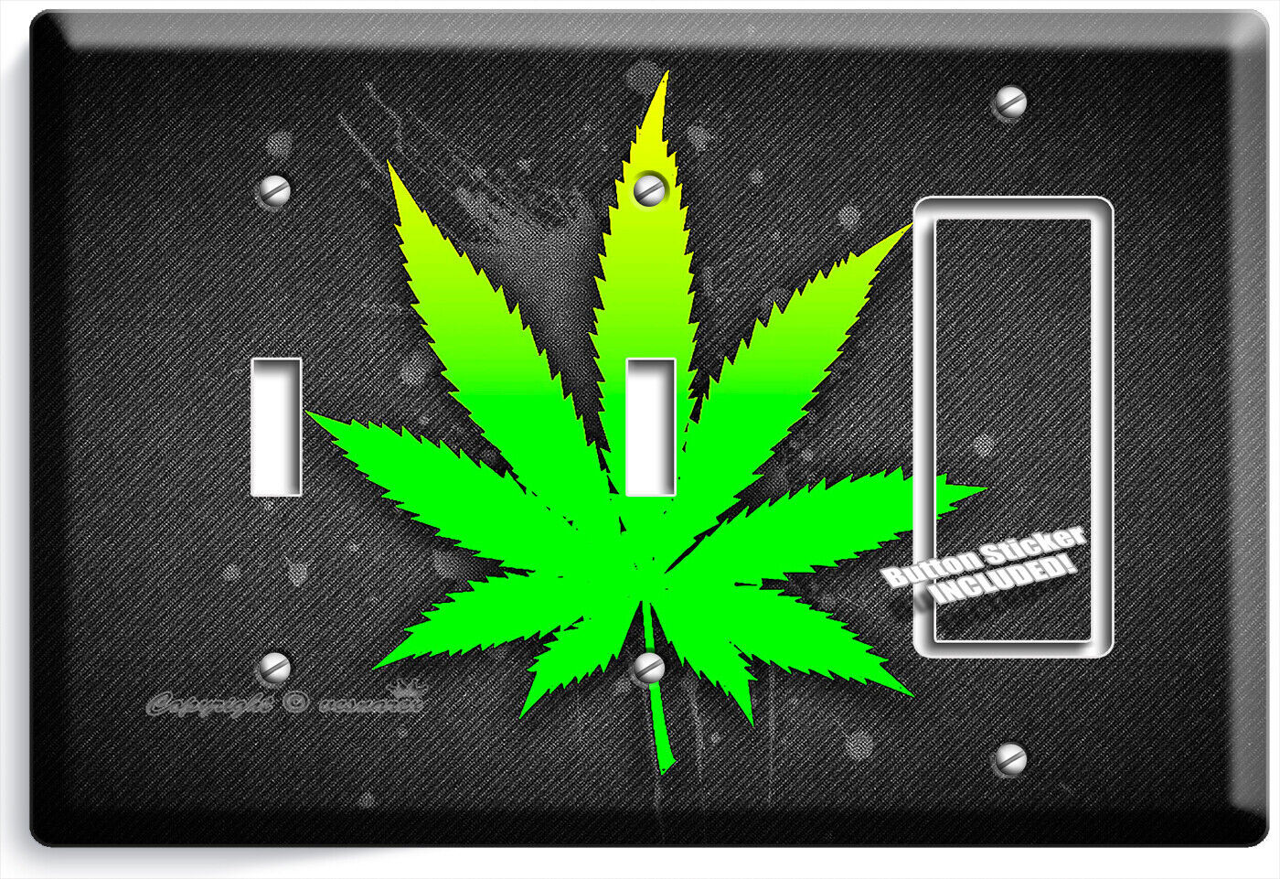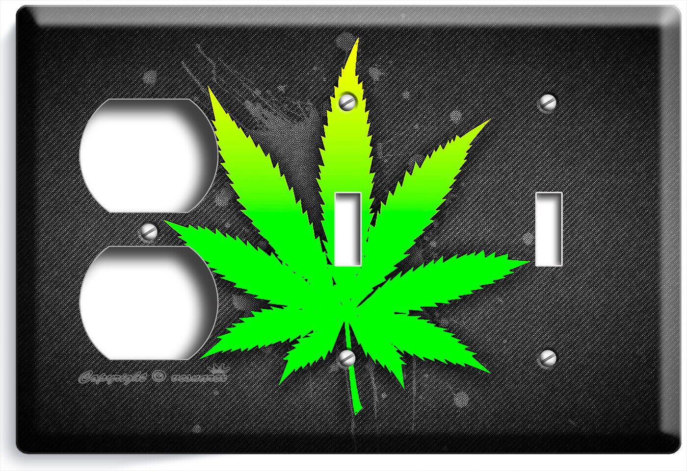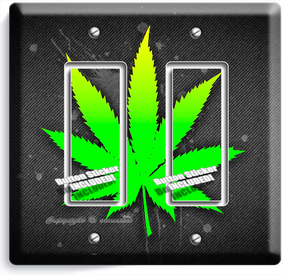 GREEN CANNABIS MARIJUANA LEAF LIGHT SWITCH OUTLET WALL PLATE HIPPIE HD ART DECOR