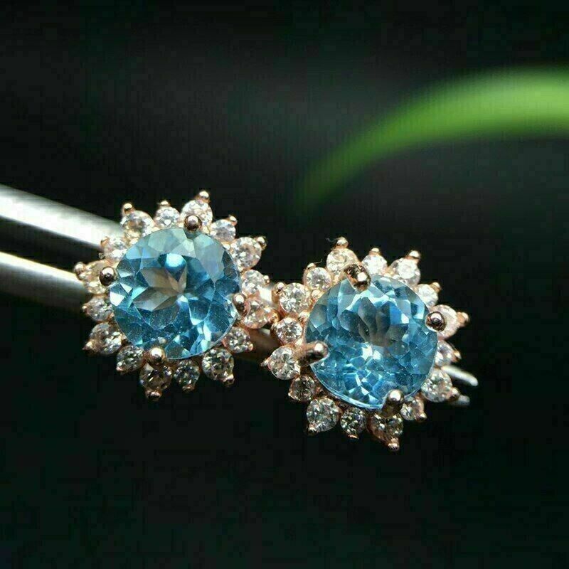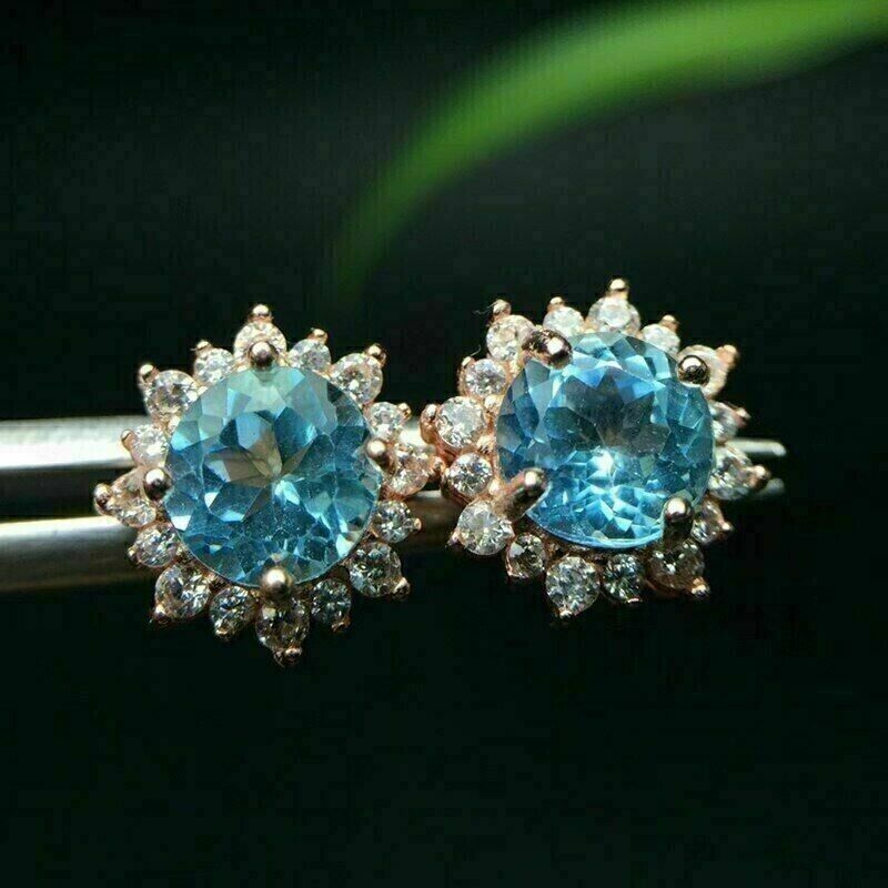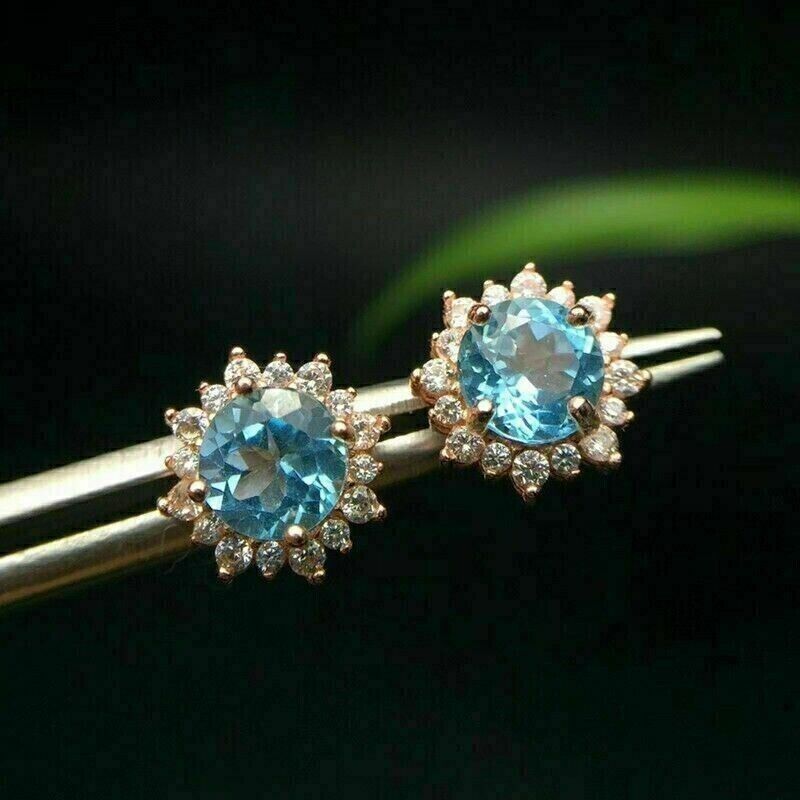 2.00Ct Round Cut Simulé Fleur Aigue-Marine Stud Or Blanc 14K Plaqué