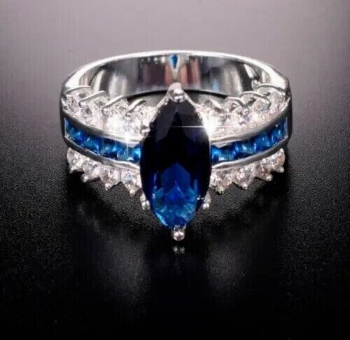 Bague de Fiançailles Saphir Simulé Taille Marquise 3.00Ct Plaqué Or Blanc 14K