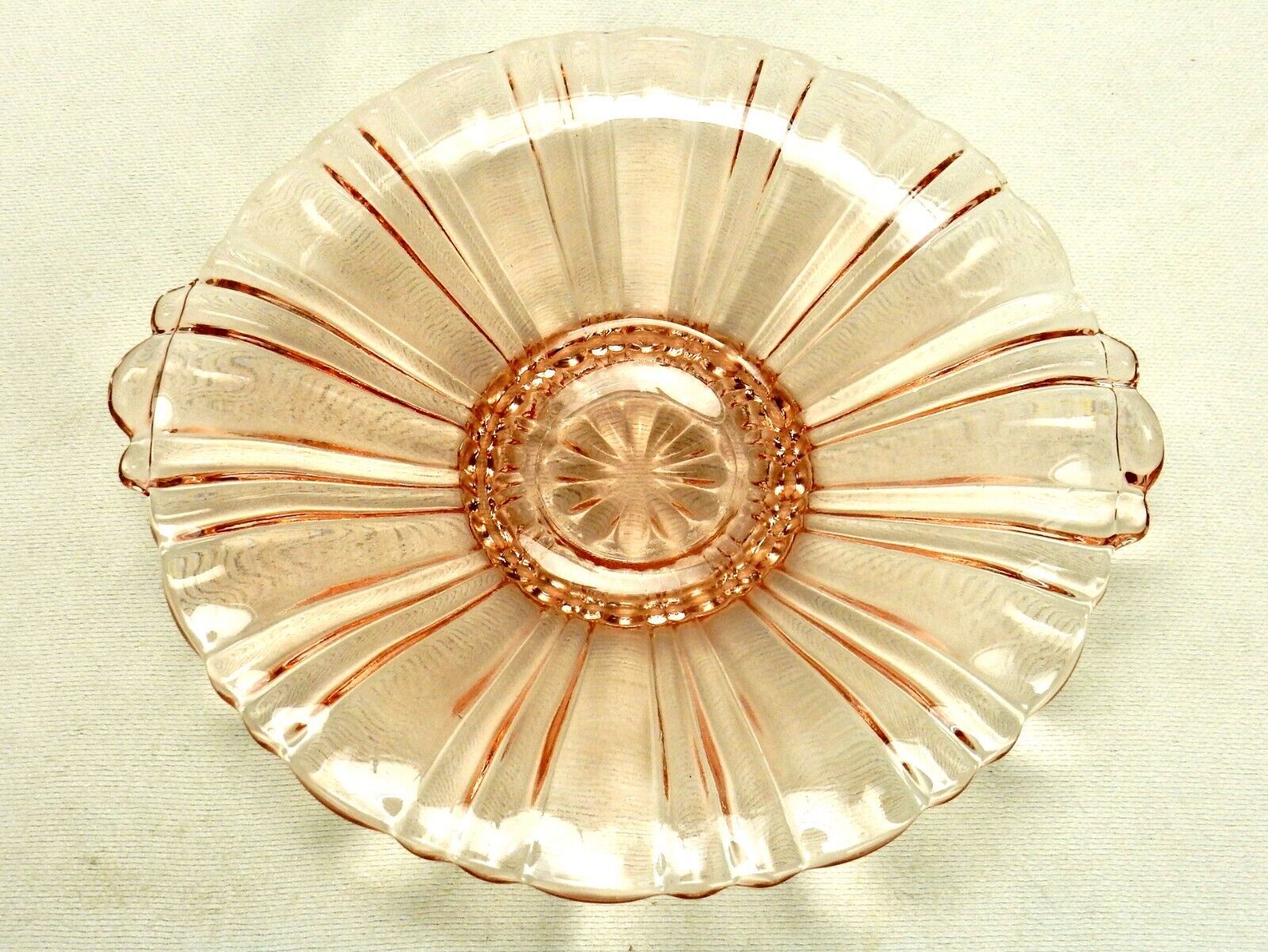8" Candy Dish, Old Cafe Pattern, Vintage Anchor Hocking Pink Depression Glass