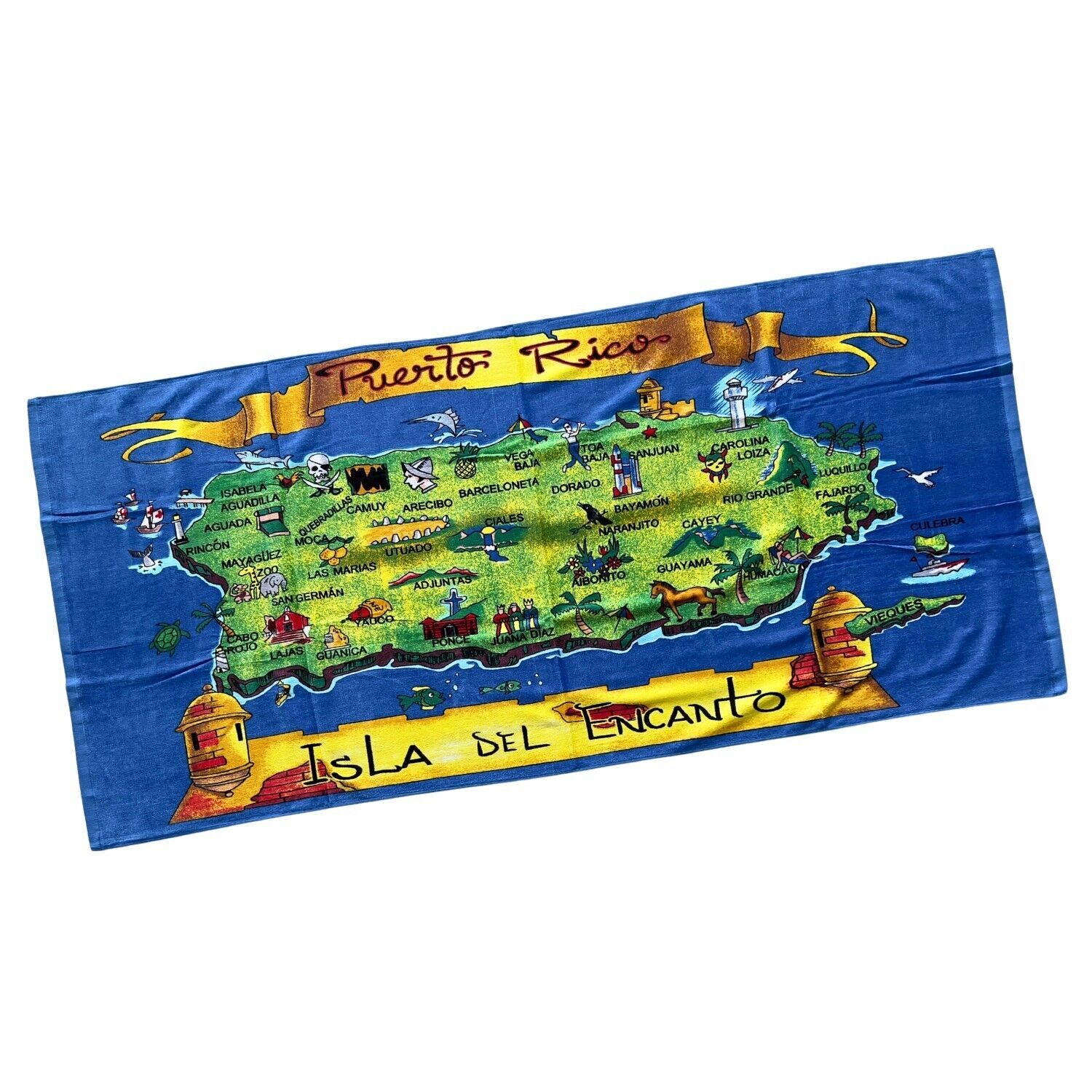 Puerto Rico Map Beach Towel 30" X 60" Cotton Twill Local Attractions
