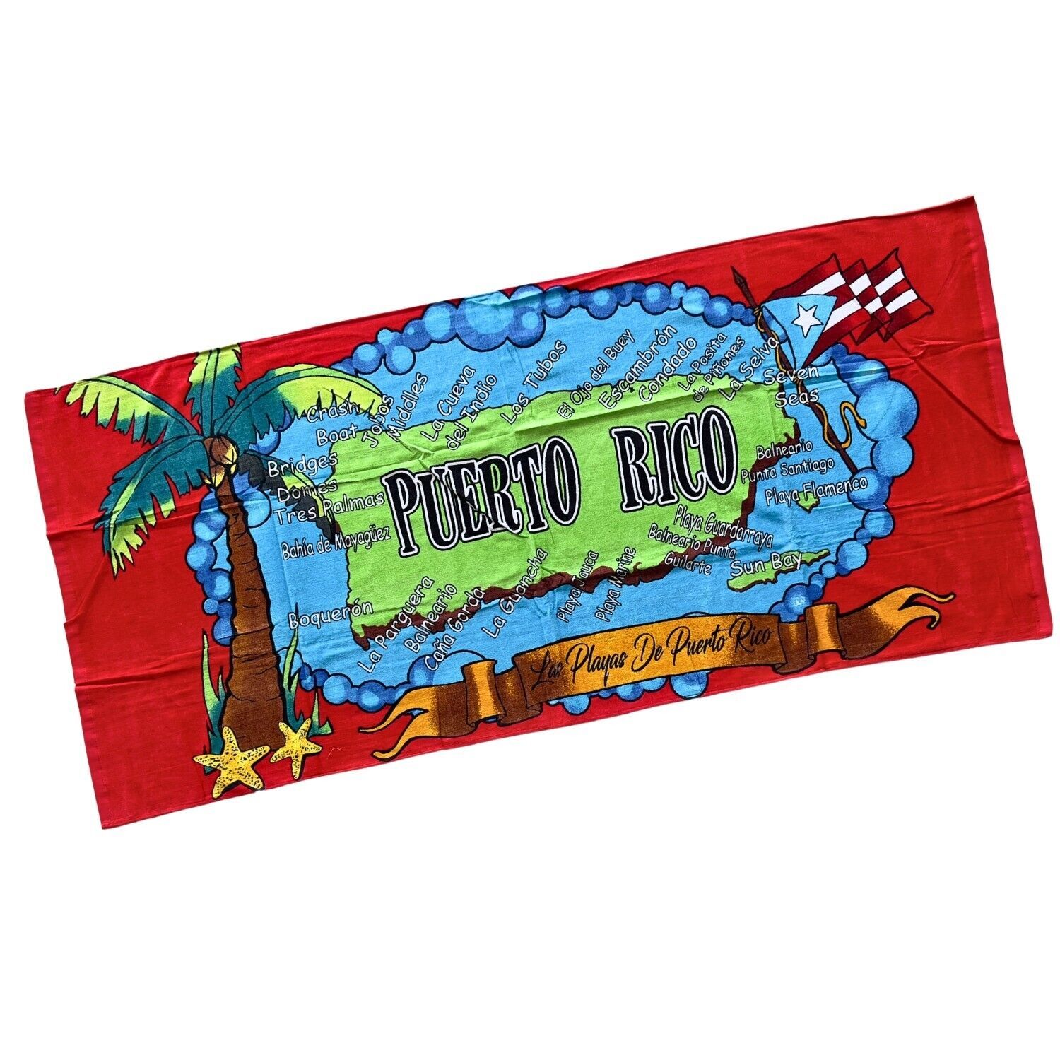 Puerto Rico Map Beach Towel 30" X 60" Cotton Twill Famous Beaches
