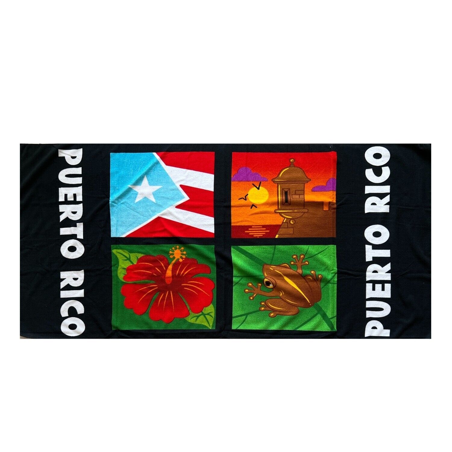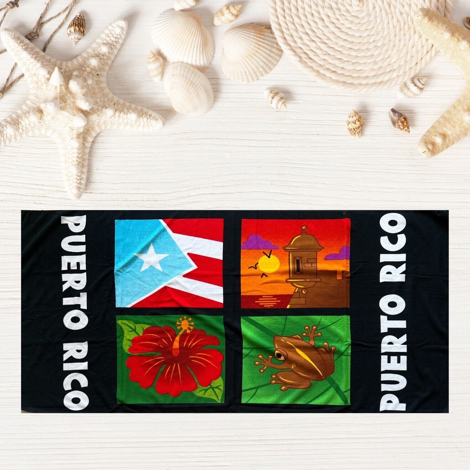 Puerto Rico Beach Towel 30" X 60" Cotton Twill Flag Garita Amapola Coquí