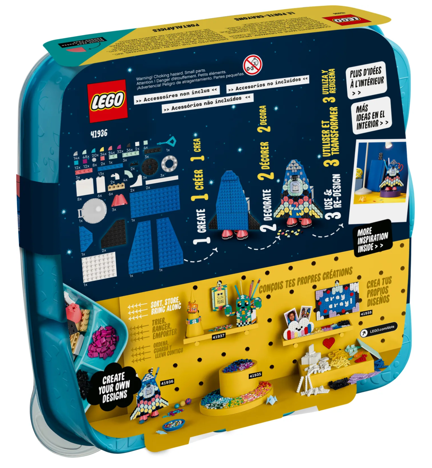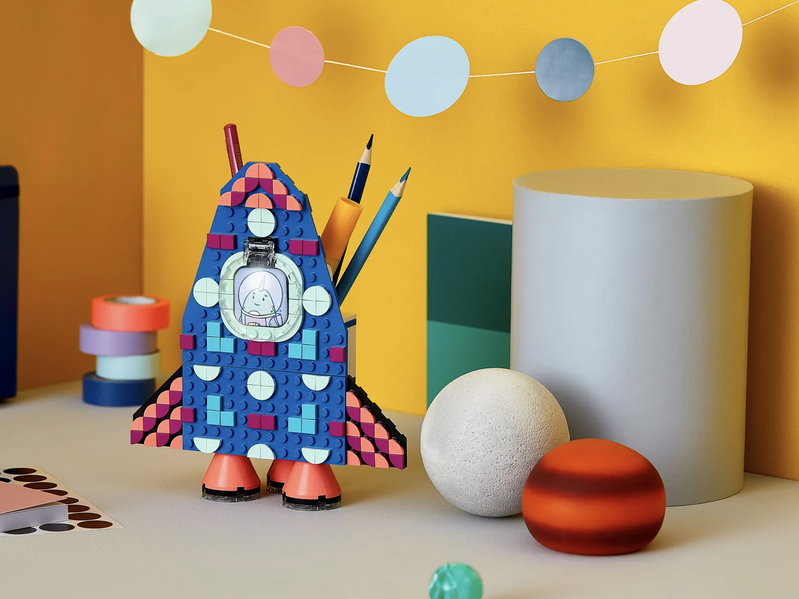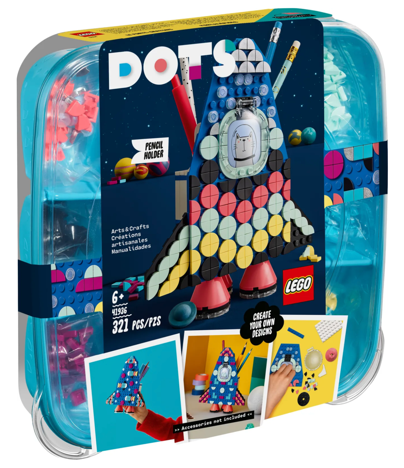 Entice space fans and arts-and-crafts lovers with this bold LEGO DOTS Pencil Holder (41936) kit! Made to be quick and easy to assemble thanks to the included instructions leaflet, this set lets kids create their own pencil holder and design it to suit their mood or room decor. Cleanup and sorting are a breeze with the enclosed storage tray.