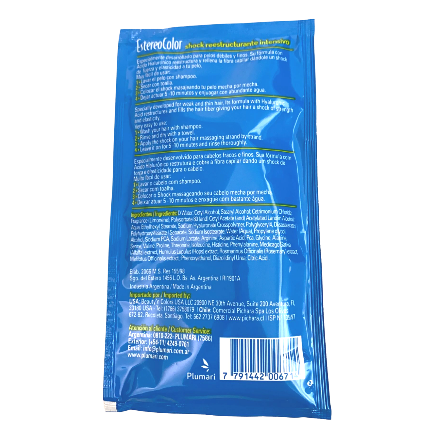 Its formula with Hyaluronic Acid restructures and fills the hair fiber giving your hair a shock of sthrenth and elasticity.