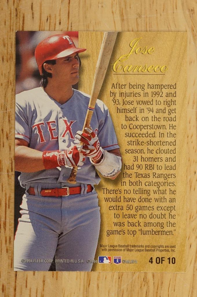 Jose Canseco 1995 Fleer Lumber Co Insert Texas Rangers #4 of 10 Baseball Card
