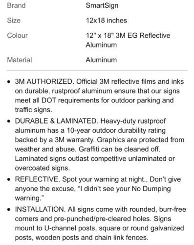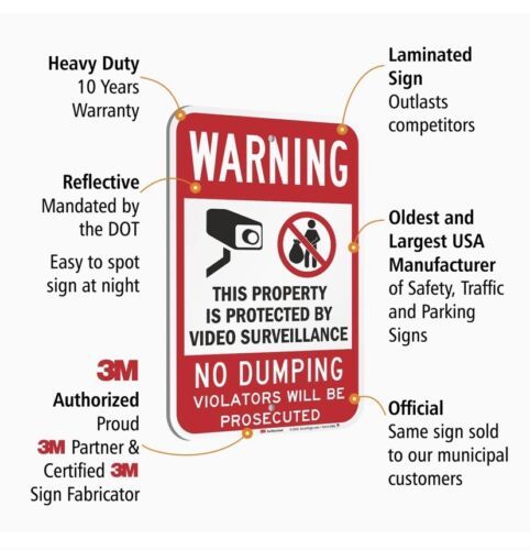 12x18 Metal Sign No Dumping Property Video and 49 similar items