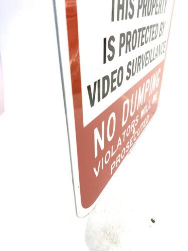 Metal aluminum 12 x 18 Sign No Dumping Property protected by video Surveillance Violators prosecuted reflective so can be seen when headlights hit them at night.