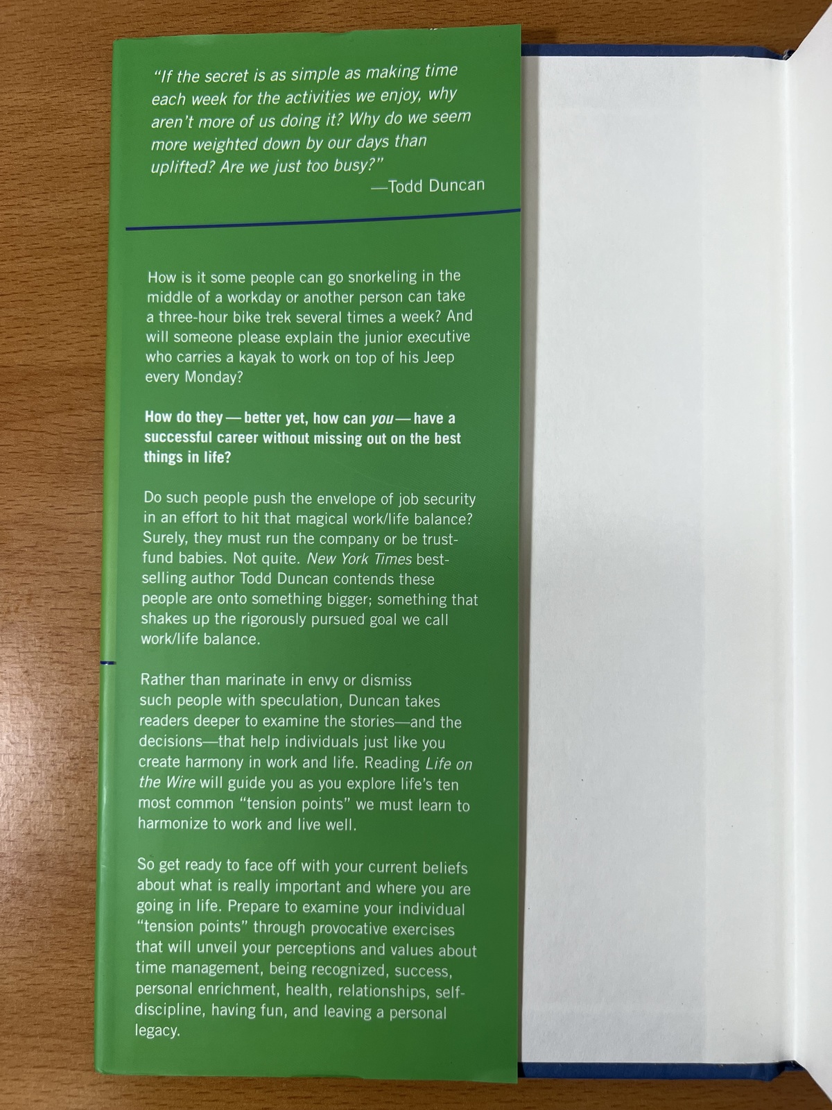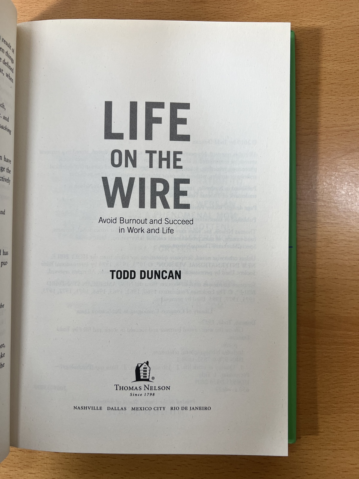 LIFE ON THE WIRE by TODD DUNCAN - hardcover - Avoid Burnout and Succeed in Work